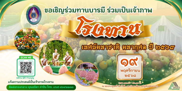 ข่าวประชาสัมพันธ์” ประเพณีเดือน 12 เทศน์มหาชาติ ” ใจผู้ใ ห้….ยิ่งใหญ่เสมอOctober 6, 2025อ่านเพิ่มเติม