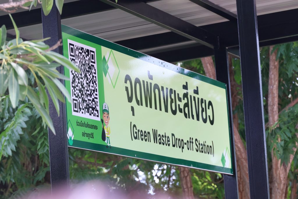 1) จุดพักขยะสีเขียว เป็นพื้นที่รองรับขยะภายในอาคารที่ผ่านกระบวนการคัดแยกขยะอย่างถูกวิธีเรียบร้อยแล้ว และเป็นจุดพักขยะที่รอให้หน่วยงานเทศบาลตำบลพลายชุมพล มาจัดเก็บไปทุกวัน อังคาร/พฤหัสบดี/เสาร์